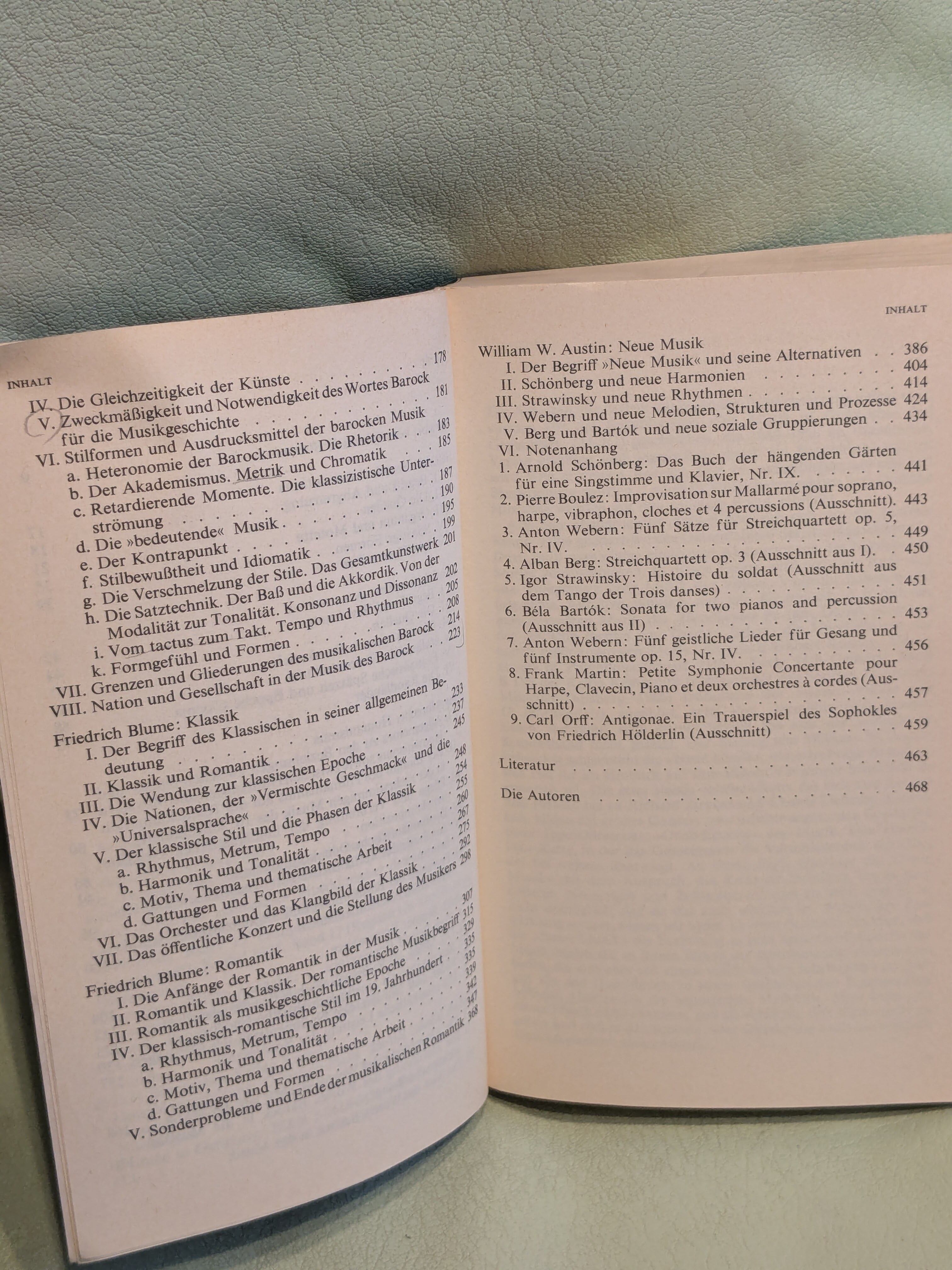 音楽史の時代について、4人の著者が個別に詳しく説明した本。目次は画像をご参照下さい。全編ドイツ語で書かれ、訳書はございません。