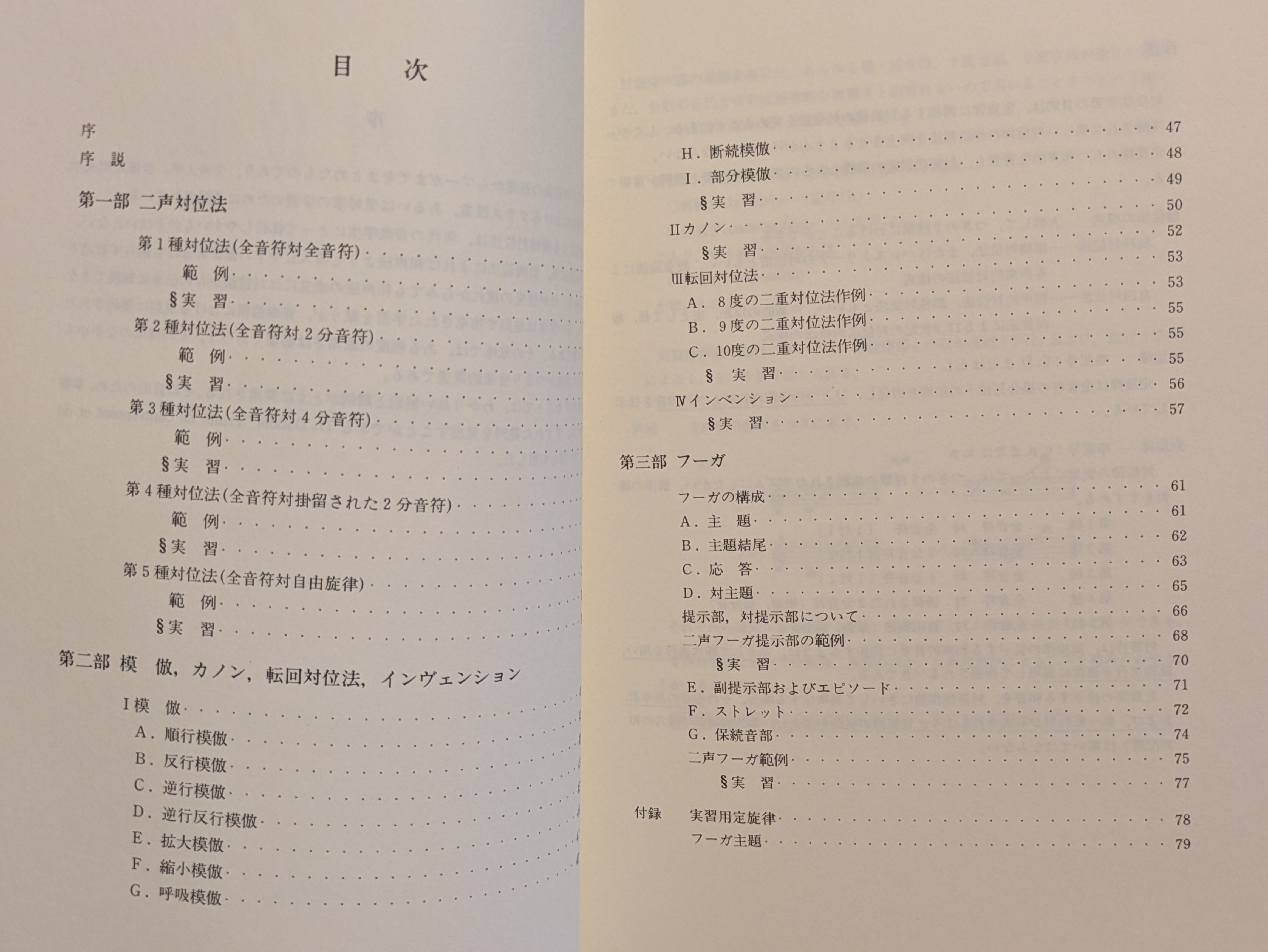 二声対位法の基礎からフーガの作曲技法までをまとめた本。音楽大学におけるクラス授業や愛好家の学習のために意図されたものなので分かり易く、音楽性と実用性に優れた指導書となっています。