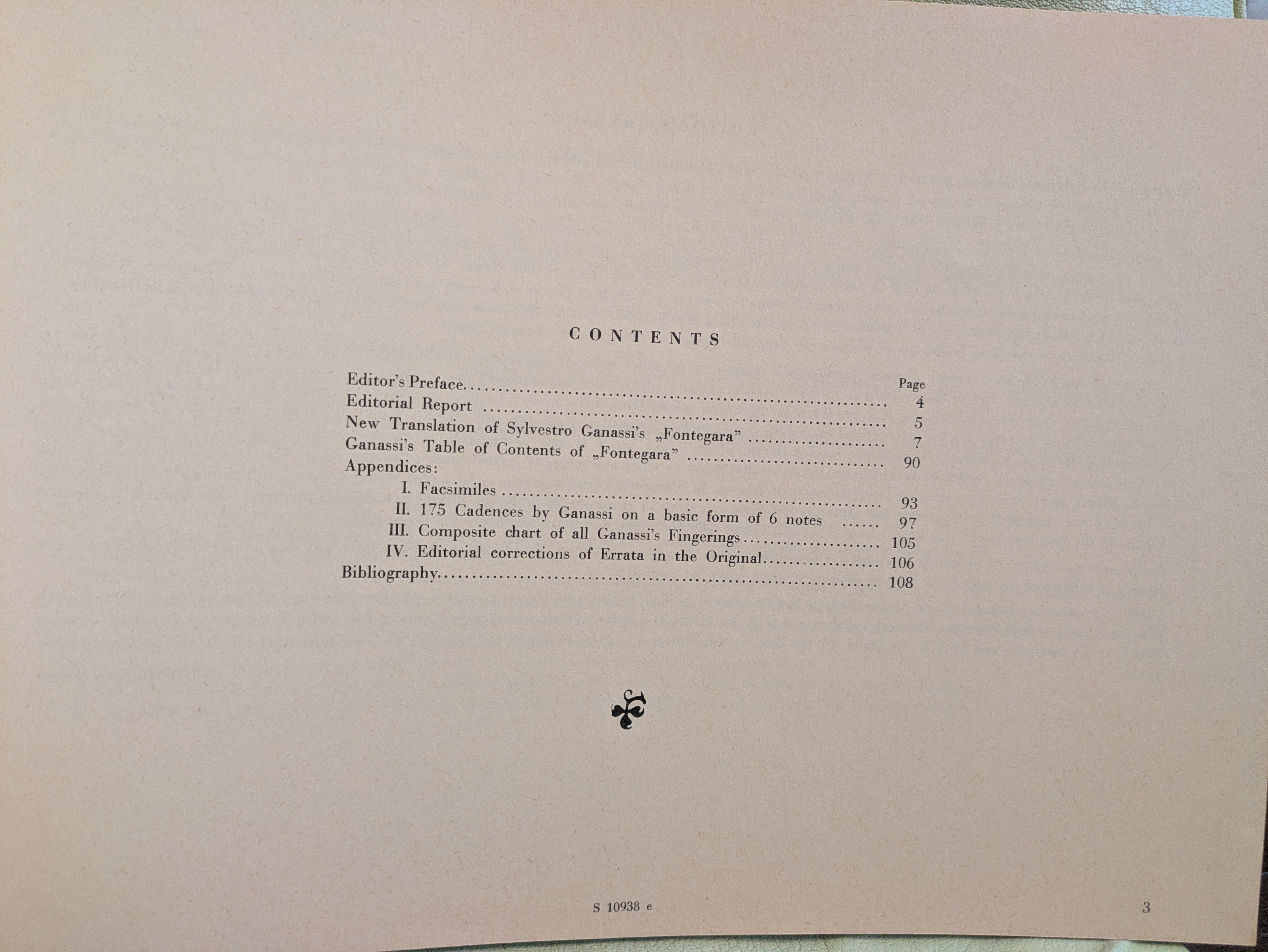 ルネサンスのリコーダー奏者,作曲家シルヴェストロ・ガナッシが1535年に出版した有名なリコーダー教本「フォンテガーラ 」の英訳版。リコーダーの奏法、装飾音、練習曲などを詳細に解説し、ルネサンス音楽における管楽器奏法の基礎を築いた歴史的名著であり、現在も古楽器演奏の研究・実践に不可欠な文献とされています。全編英語で書かれ訳書はございません。