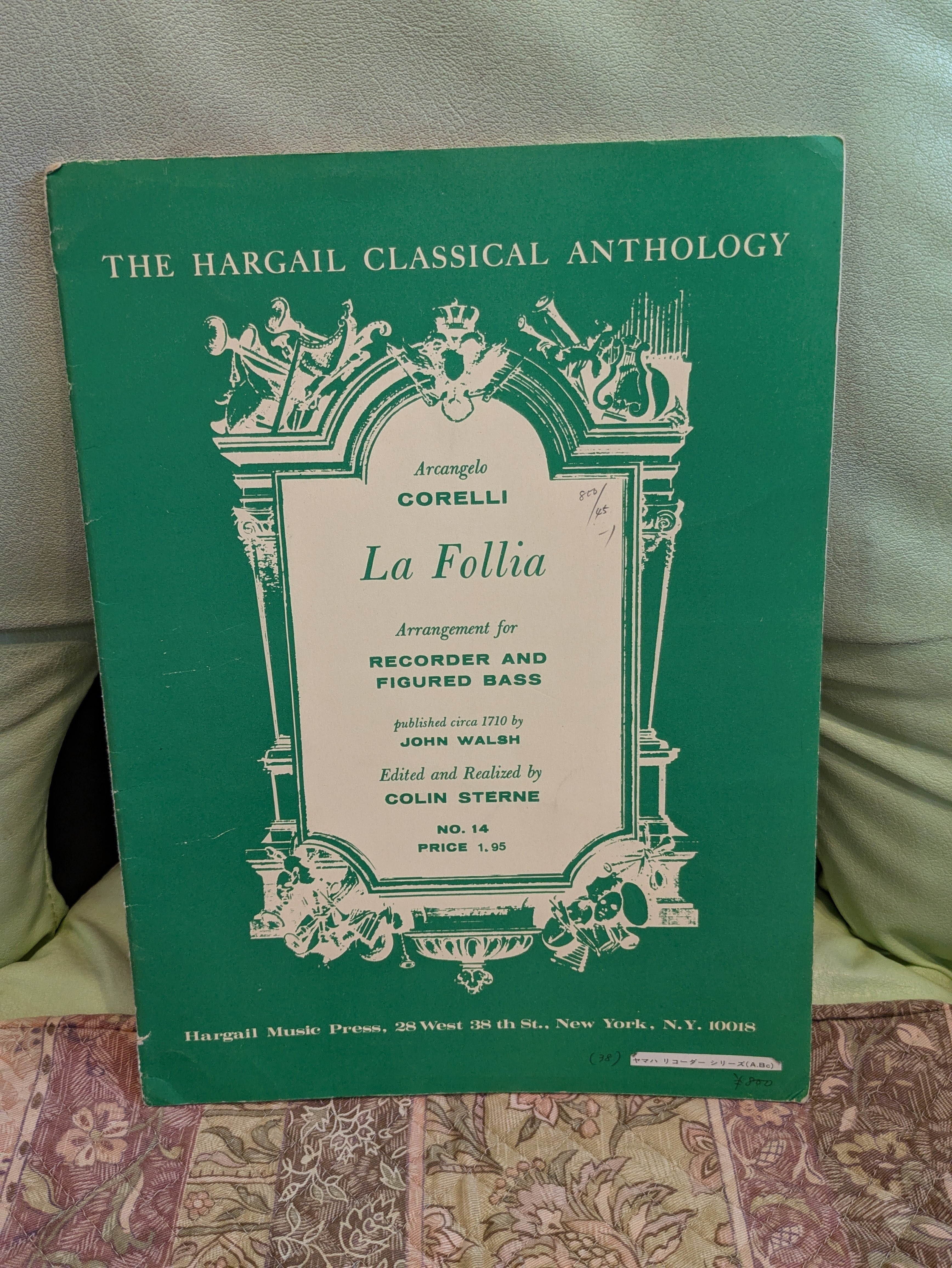 La Follia arrengement for RECORDER AND FIGURED BASS【著者:Arcangelo CORELLI】出版社:HARGAIL MUSIC PRESS.