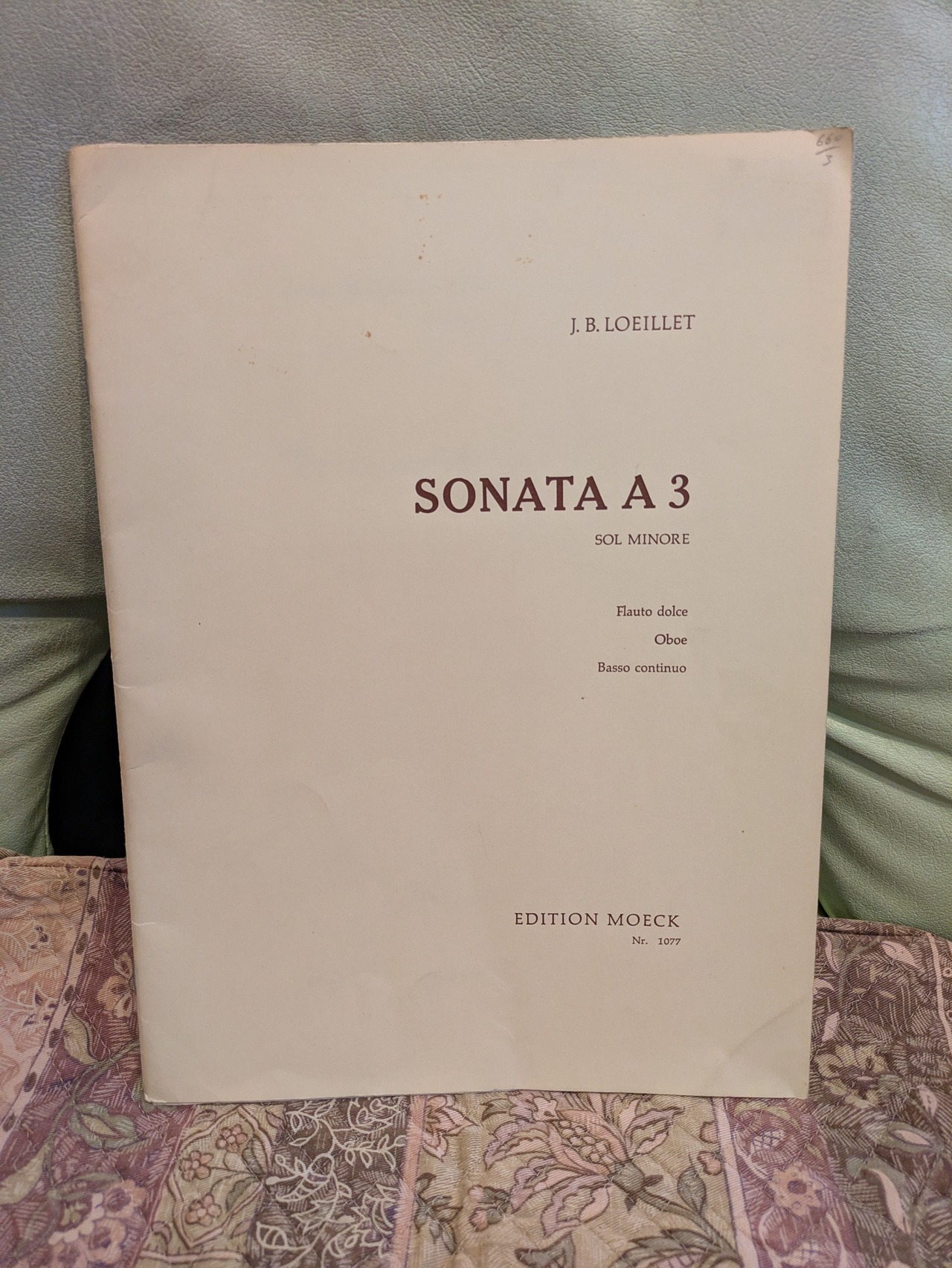 SONATA A3 SOL MINORE【著者:J.B.LOEILLET】出版社:EDITION MOECK 1963年