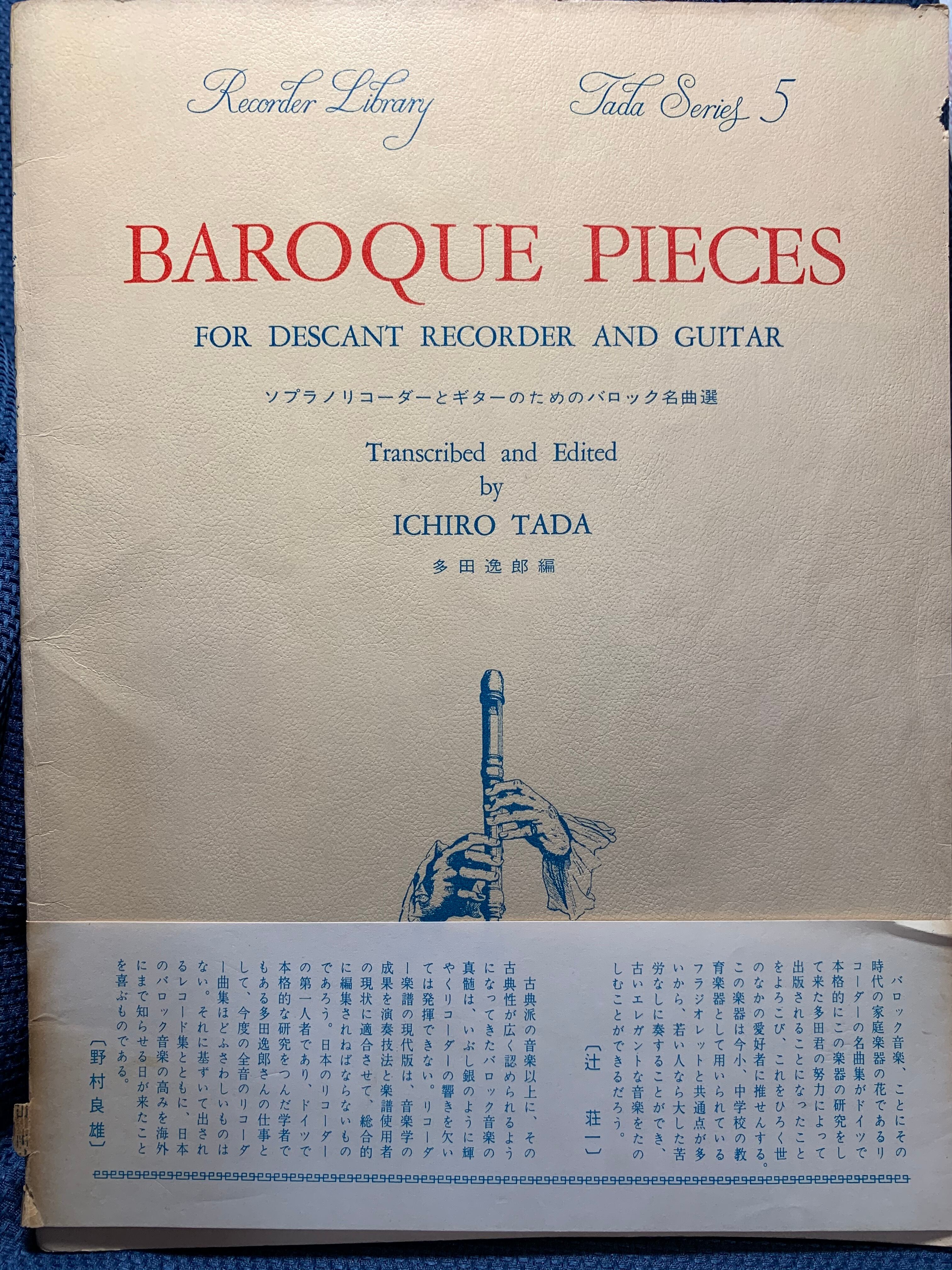 Recorder Library Tada Series 5 ソプラノリコーダーとギターのためのバロック名曲選【著者:多田免郎】出版社:全音楽譜出版社 1998年